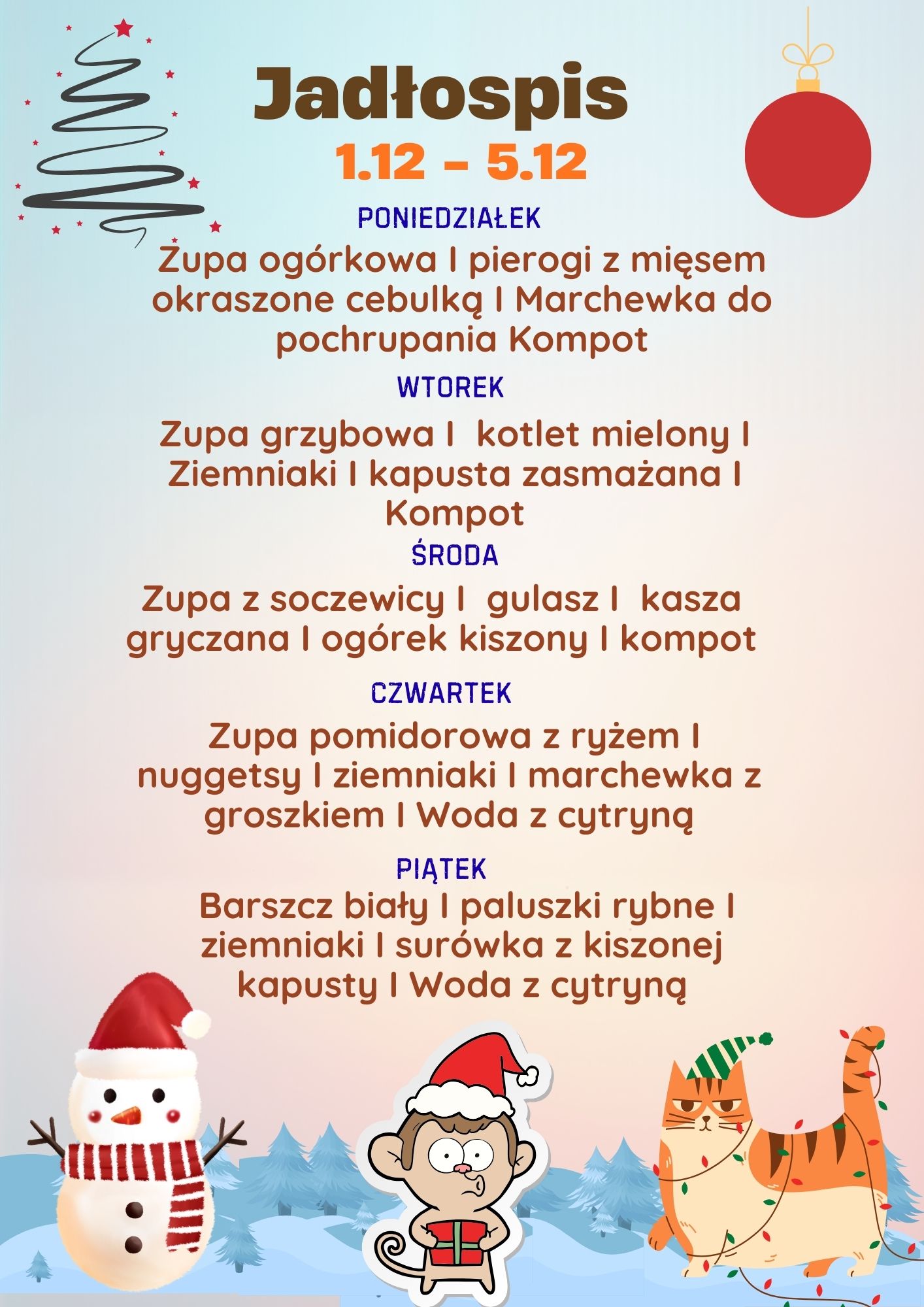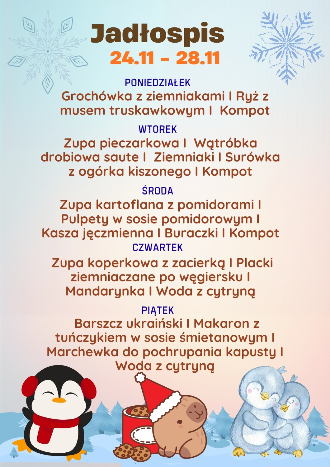 *Jadłospis może ulec zmianie z przyczyn niezależnych od szkoły.